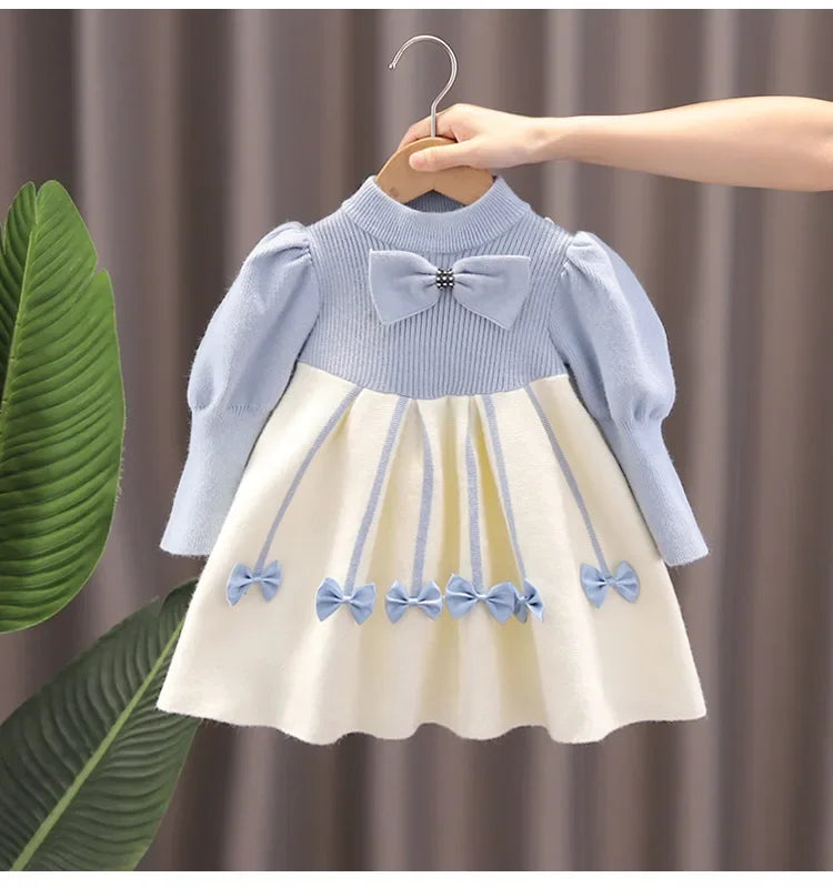 Autumn Winter Girls' Sweater Long Sleeve Dress 2025 Christmas Party Girl Baby Retro Cheongsam Lotus Leaf Knitted Wool Dress