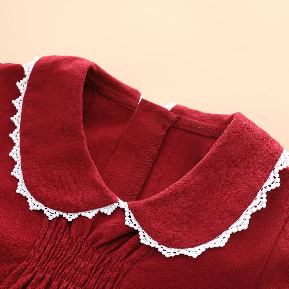 Baby Girl Smock Dress Toddler Peter Pan Color Holiday Princess Dress Infants Red Clothes
