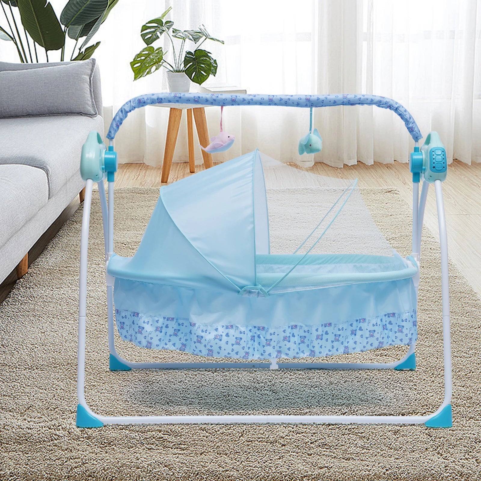 Electric Baby Cradle Auto Swing Rocker Cot Infant Sleeping Bed Swing Crib Kit Timer +Bluetooth Music +Mat +Pillow 5Gears Adjustable