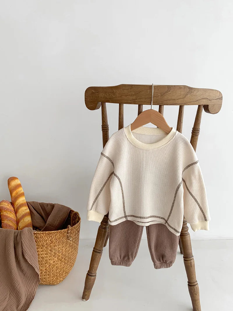 MILANCEL Spring Designer Kids Baby Clothes Casual Boys Suit Cool Infant Blouse And Pants2 PCs Waffle Clothing Set Outfits