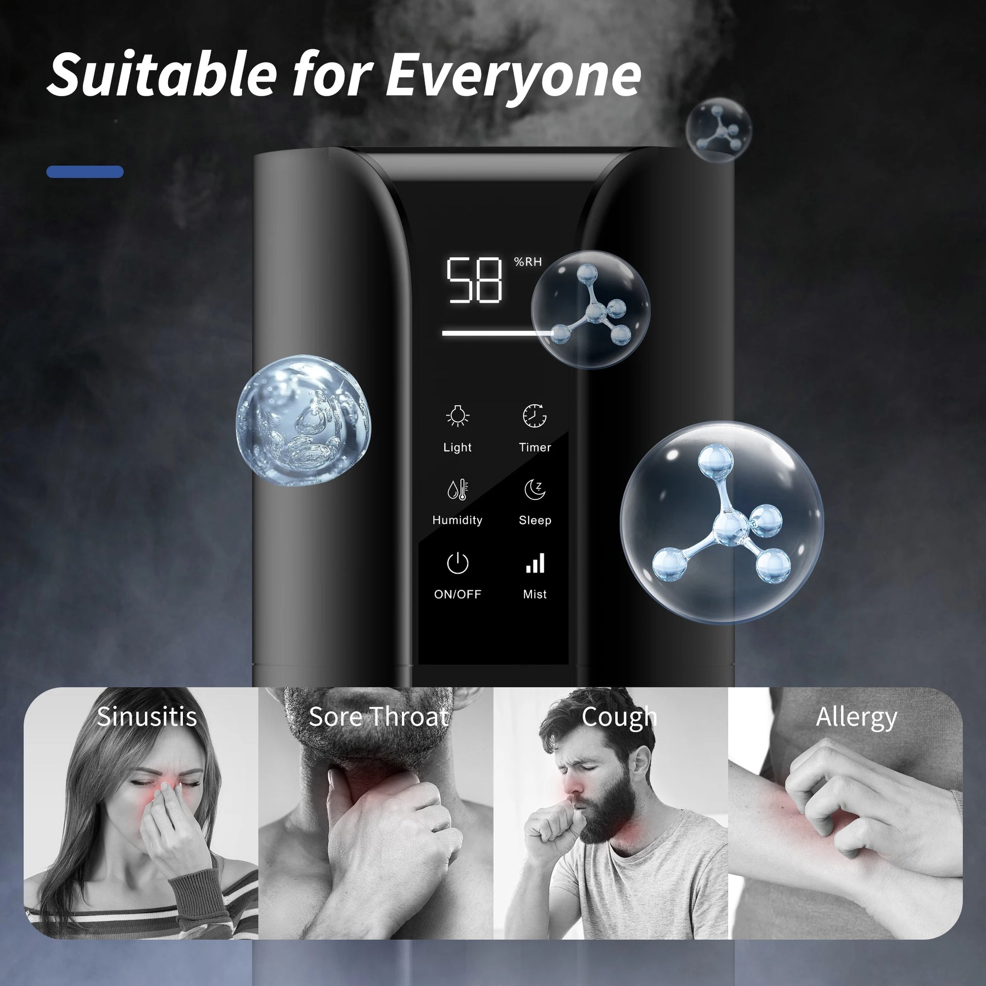 SEJOY Humidifiers for Bedroom Large Room, 9L/2.4Gal Cool Mist Top Fill Humidifier with Essential Oil 360°Nozzle for Baby Office