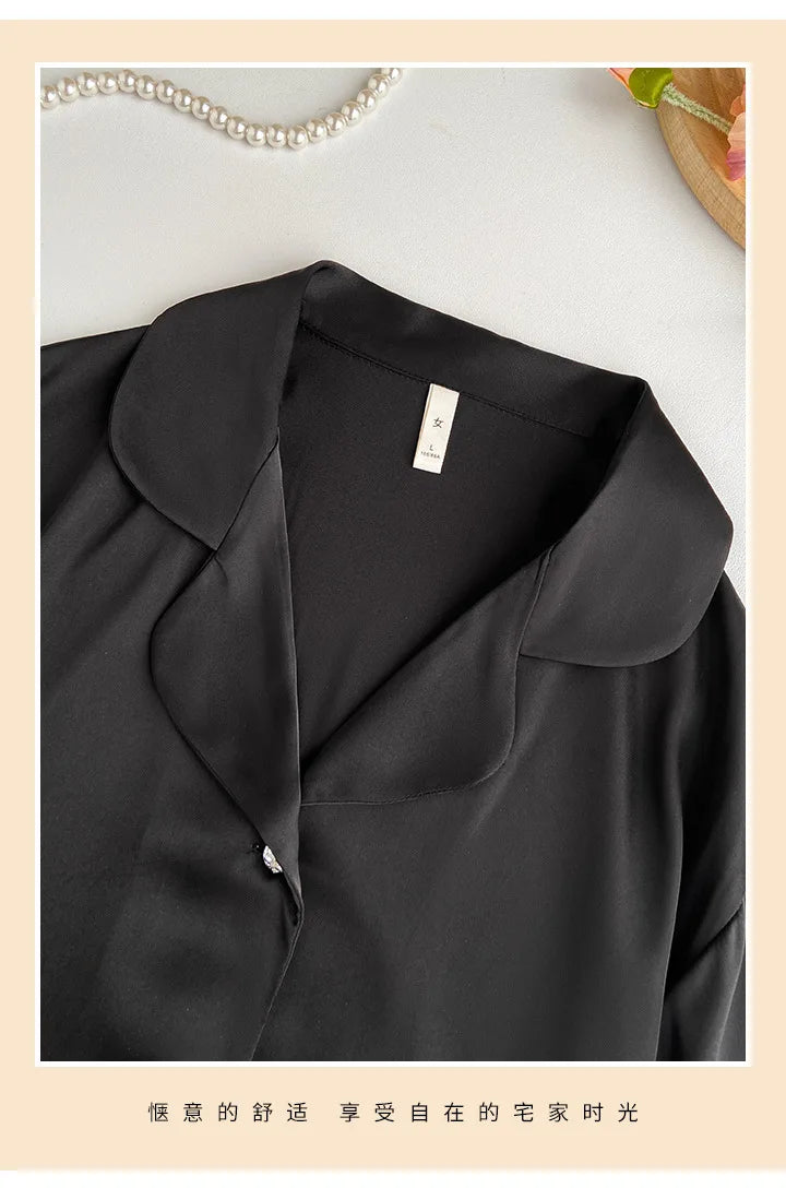 Spring Autumn Female Pajamas Trouser Set Luxury Feather Pink Bride Wedding Sleep wear Gift Sexy Loose Satin Home Wear Lounge wear